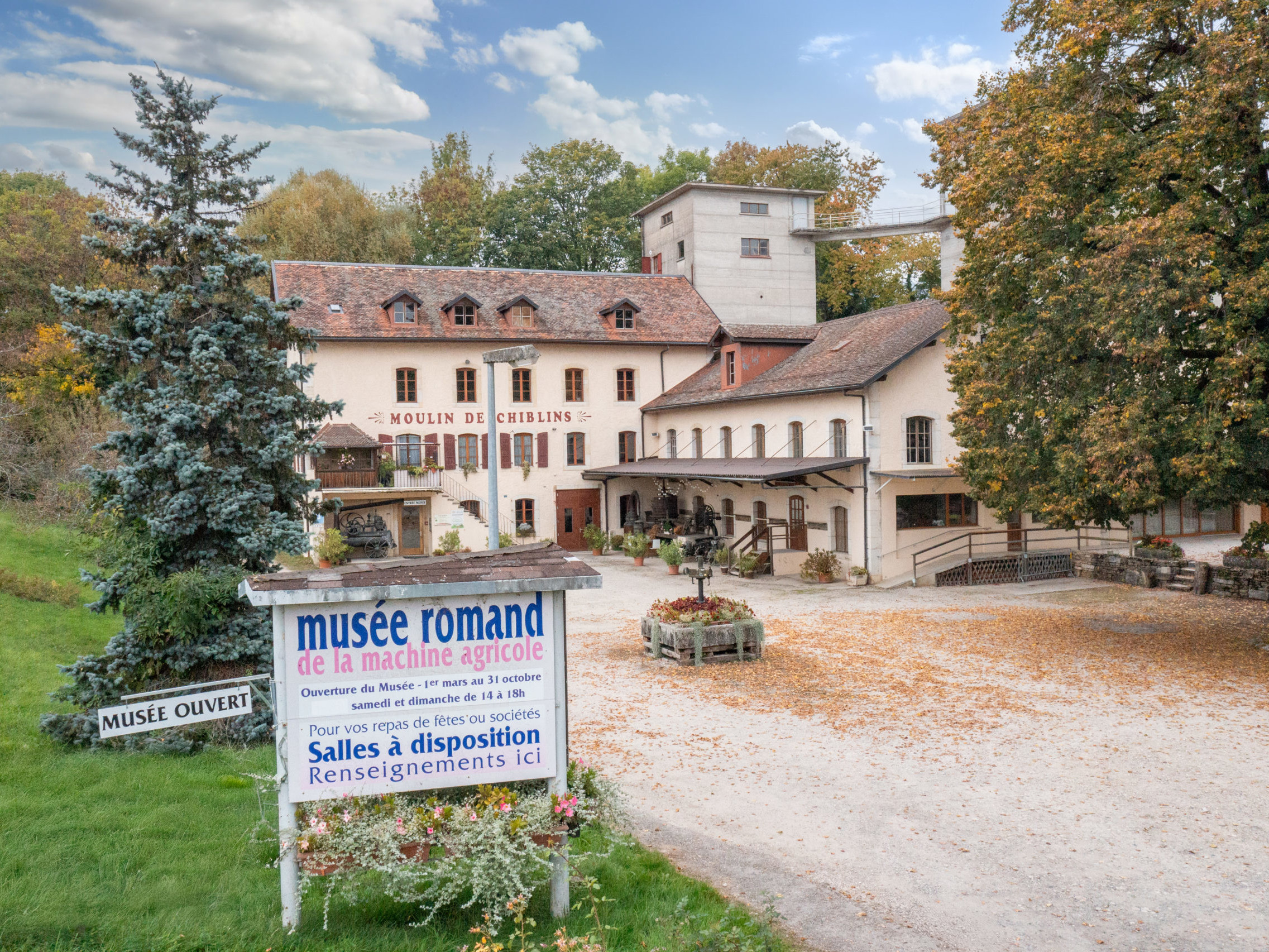 Ouvert dès 1991, le Musée Romand de la Machine Agricole s’est construit autour d’une collection unique de plus de 2000 outils et machines retraçant l’histoire de l’agriculture et de sa mécanisation. Victor Bertschi en fut le Conservateur jusqu’à fin 2011, fonction qui valut plusieurs distinctions au musée. Depuis 1995, le Moulin de Chiblins figure à l’inventaire suisse des biens culturels sur la liste des sites à protéger, mais Chiblins ne deviendra un musée permanent qu’en 1997, après d’importants travaux d’aménagement.